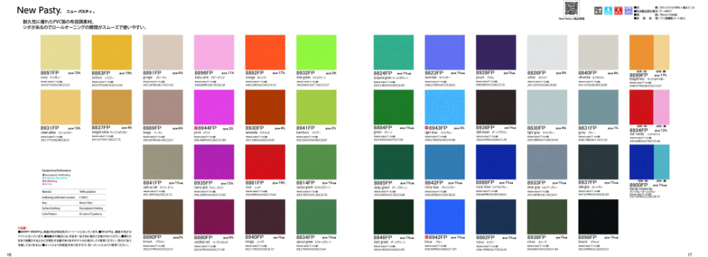 テントの材料となるカタログです。この原反を使用して製品になります。